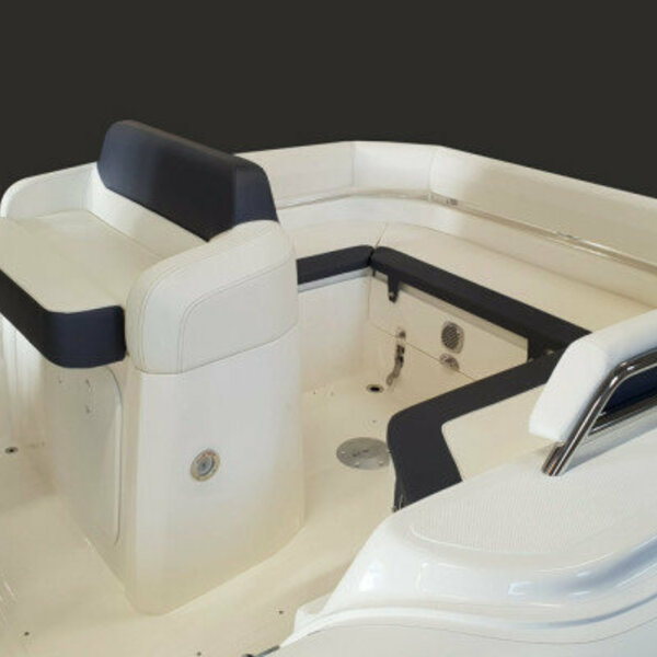 EquipementsPlateformes de bain arrière avec échelle, vaste bain de soleil avant, salon arrière en U convertible en bainde soleil, grande table, douchette, grand bimini sur rollbar, feux de navigation, assise devant console,banquette de pilotage position assise ou type leaning post, guindeau électrique, mat de ski, nombreuxcoffres de rangement. Commande moteur électrique, direction hydraulique.
