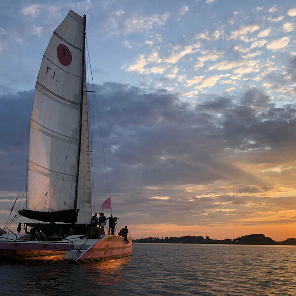 Profitez d'un apéritif sous voile en fin de journée sur un maxi catamaran. Ambiance détente garantie